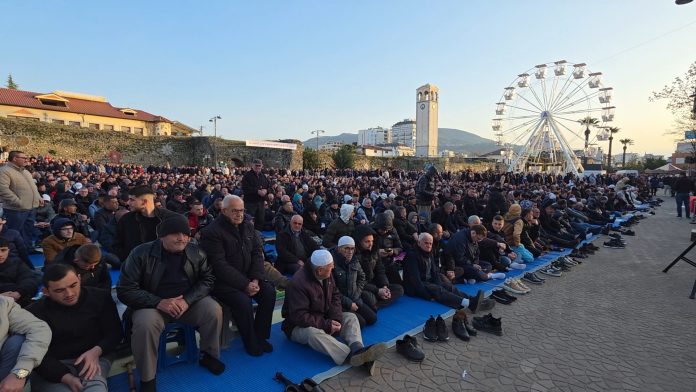 ELBASANI SOT Video/ Besimtarët mysliman në Elbasan festojnë Fiter Bajramin 20 Mars, 2026 0 3 FacebookTwitterPinterestWhatsApp Edhe këtë vit qindra besimtarë myslimanë janë mbledhur në sheshin Gensher në Elbasan për të kryer faljen për Fiter Bajramin. https://elbasaniflash.al/wp-content/uploads/2026/03/20260320_062743.mp4