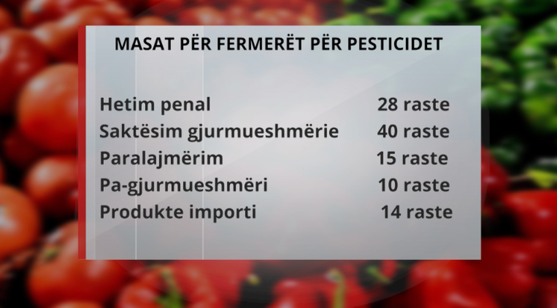 Pas kontrolleve, 28 raste ose gati 26% e fermerëve të inspektuar u dërguan për hetim penal për përdorim mbi normë i pesticideveose përdorim të PMB-ve të palejuara.