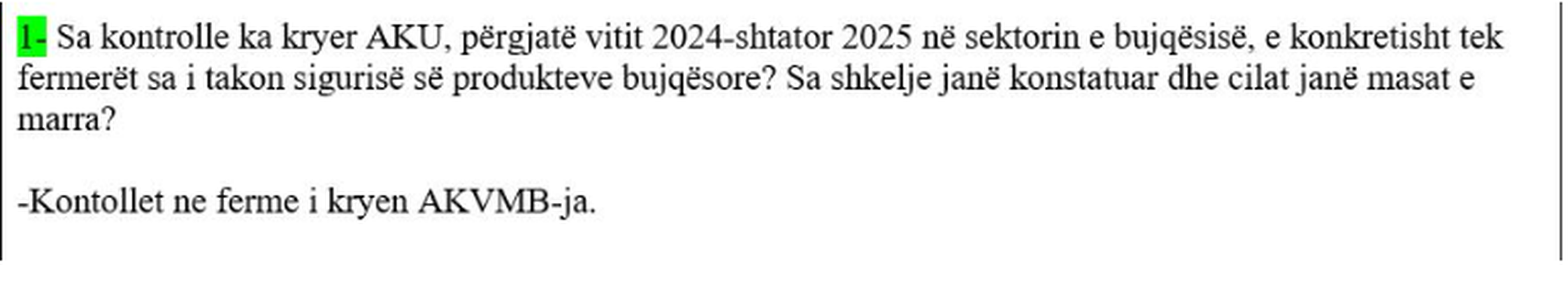 “Me qëllim ndjekjen e gjurmueshmërisë nga DRAKU respektive me anë të shkresave përkatëse me lëndë “Kërkesë për bashkëpunim” i drejtohen AKVMB përkatës me qellim ndjekjen dhe mbikëqyrjen e fermerëve për përdorimin e pesticideve dhe respektimin e karencës së përdorimit në produkt”, thotë AKU.