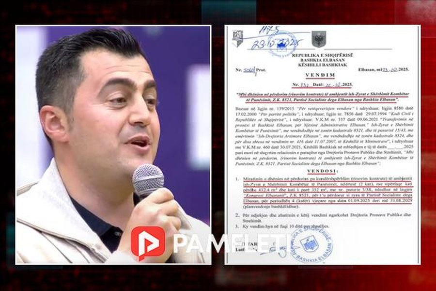 “Zyrat e Shërbimit të Punësimit, ndërtesë me dy kate, me sipërfaqe kati i parë 432.4 m² dhe kati i dytë 352 m², në lagjen ‘Kongresi i Elbasanit’, i jepen për zyra pa pagesë Partisë Socialiste, Dega Elbasan, për periudhën katërvjeçare nga 1 shtator 2025 deri më 31 gusht 2029”, vendim i miratuar edhe nga Prefektura.