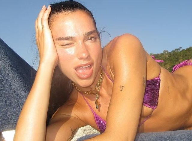 Dua Lipa u shfaq mahnitëse me bikini të vogla me xixa, ndërsa pozoi për foto seksi në Instagram në Brazil.