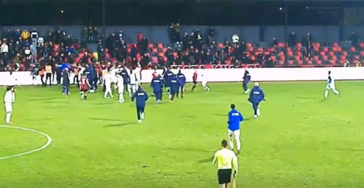 Tifozë hynë në fushë dhe pati konfuzion, duke detyruar ndërprerjen e ndeshjes. Menjëherë ka pasur prani të Forcave të Ndërhyrjes së Shpejtë dhe Forcat Shqiponja, për të vënë situatën nën kontroll.