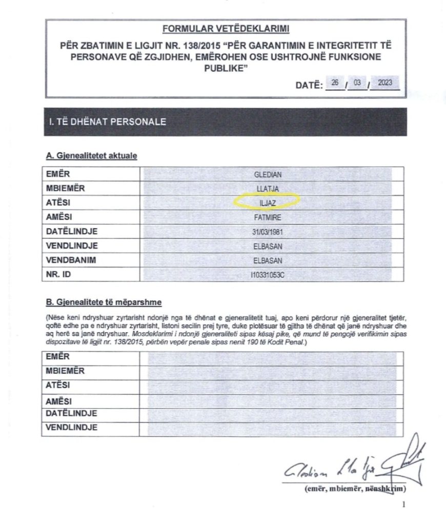 Mes pronarëve përfitues rezulton edhe Iljaz Llatja, i cili është babai i kryebashkiakut të Elbasanit Gledian Llatja. Nuk dihet se sa është pjesa takuese në letër e z. Iljaz Llatja, por vendimarrja e të birit Gledian Llatja, është jo vetëm në konflikt interesi, por ka edhe natyrë korruptive.