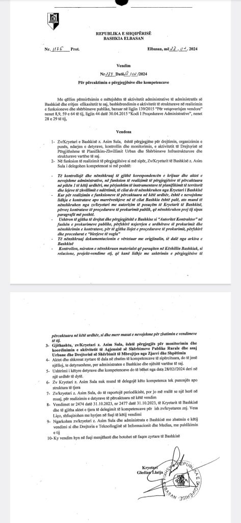 Por, duket se zonja Bylykbashi u tremb nga SPAK dhe nuk pranoi më të firmoste, edhe pse për çdo firmë dyshohet se merrte pjesën e saj. Në këtë rrethana, Llatja ia ka dhënë vulën nënkryetarit tjetër Asim Sula, i cili firmos tenderat e dyshimtë për rrethin e përhershëm klientelist.