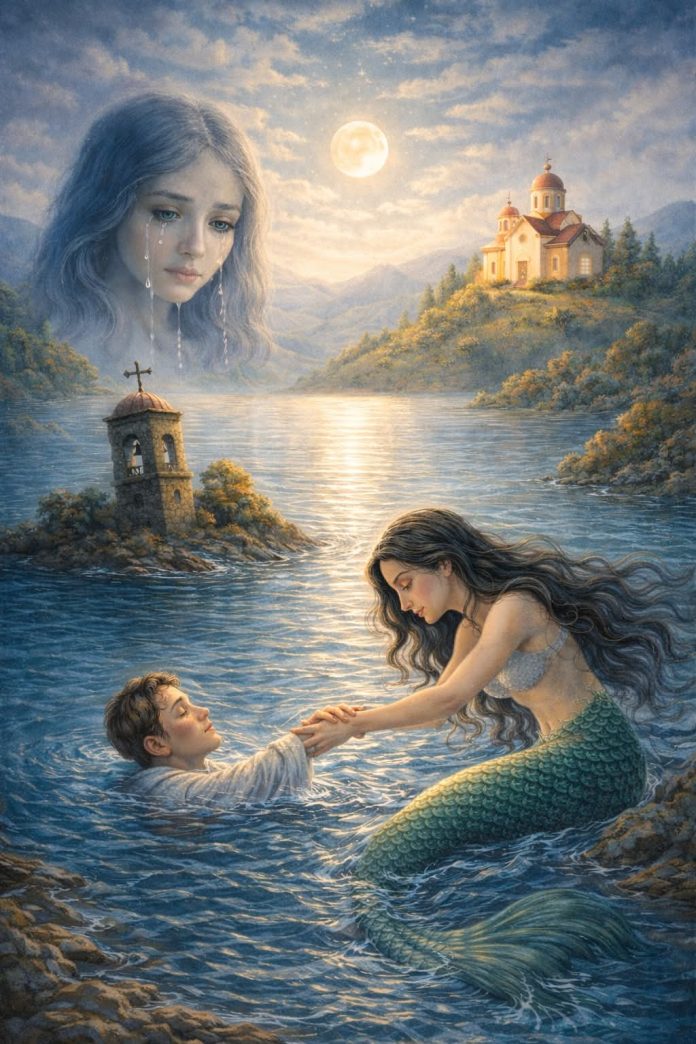 Legjenda thotë se Diellëza u shndërrua në një sirenë liqeni. Kur ndonjë djalë i pabindur rrezikon të mbytet, ajo i zgjat dorën dhe e shtyn drejt ishullit për ta shpëtuar, sikur të donte të kthente në mëshirë dhimbjen e saj të pafund.