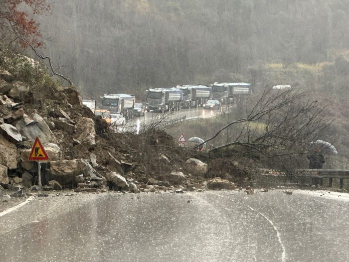 VENDI Masivi shkëmbor bie në rrugë, bllokohet aksi Gjirokastër-Tepelenë 7 Janar, 2026 0 22 FacebookTwitterPinterestWhatsApp Bllokohet sërish aksi rrugor, që lidh Gjirokastrën me Tepelenën. Një masiv shkëmbor është shkëputur nga shpati i malit duke rënë në rrugë. Bllokimi ka rënë në zonën që njihet si “Shkalla e Zezë”./abcnews.al