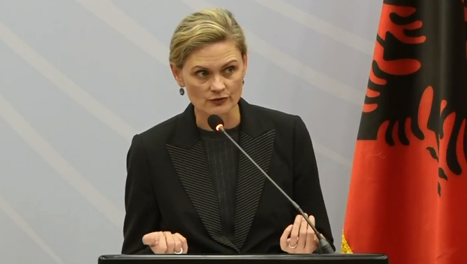 E Ngarkuara me Punë e SHBA-së në vendin tonë, Nancy VanHorn, në ceremoninë e mbylljes së trajnimit të udhëhequr nga FBI për hetuesit e SPAK dhe BKH në Akademinë e Sigurisë, deklaroi se Amerika “do të ndjekë me këmbëngulje prioritetet e Presidentit Trump në Shqipëri, duke forcuar institucionet që luftojnë krimin e organizuar dhe trafikun e narkotikëve”.